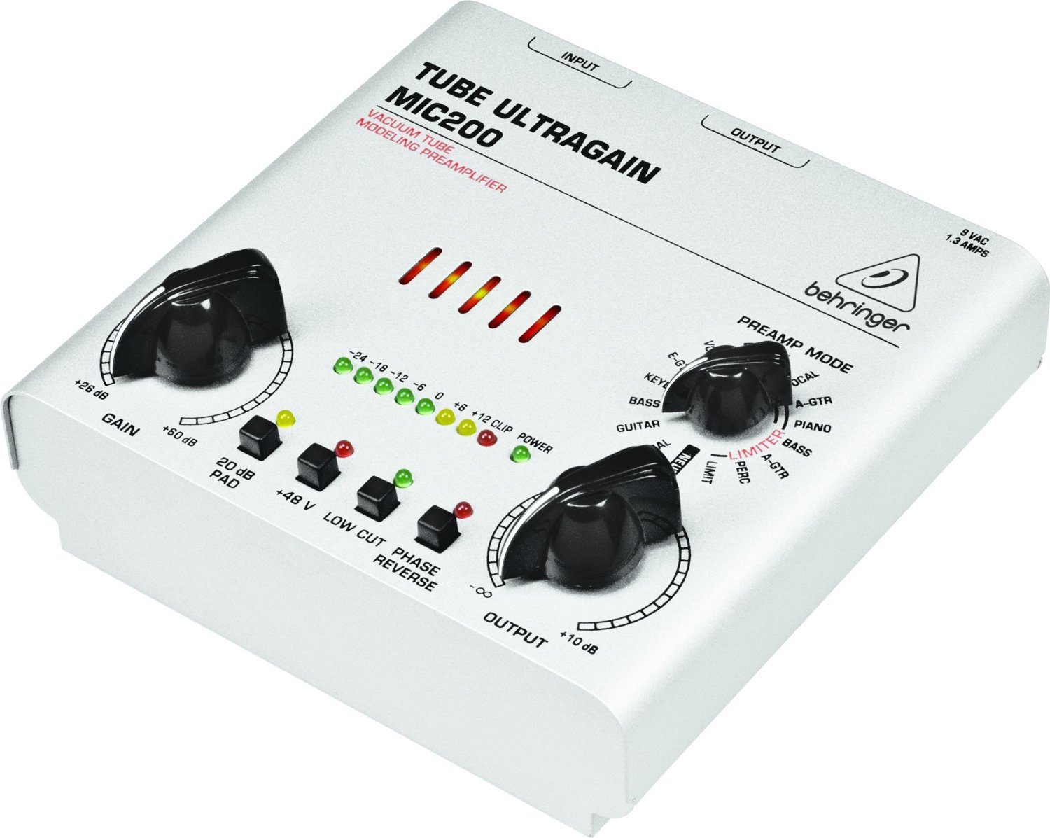 Behringer Tube ULTRAGAIN MIC200 Preamp được thiết kế hoàn hảo cho home studio, sân khấu nhỏ, và các ứng dụng ghi đĩa cứng. Preamp MIC200 Preamp sử dụng bóng đèn 12AX7 với công nghệ UTC mang lại chất giọng ấm áp đặc biệt tiếng ồn cực thấp. Ngoài ra, Preamp MIC100 cho phép bạn nhanh chóng tối ưu hóa các bản ghi âm bằng cách chọn từ 16 chế độ voicings cho vocals, acoustic và guitar điện, bass, bàn phím, trống, và nhiều hơn nữa.. TUBE ULTRAGAIN MIC100 đi kèm với công tắc đảo pha, + 48V phantom, và 20dB pad.