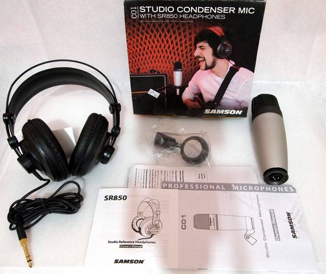 Combo micro thu âm Samson C01 + headphone kiểm âm SR850. Hàng new full box bảo hành chính hãng 12 tháng. Sản phẩm phù hợp cho Home Studio. Fullbox bao gồm Micro Samson C01, Tai nghe Samson SR850, khớp gá chân đế, hộp chống shock và tài liệu sản phẩm.