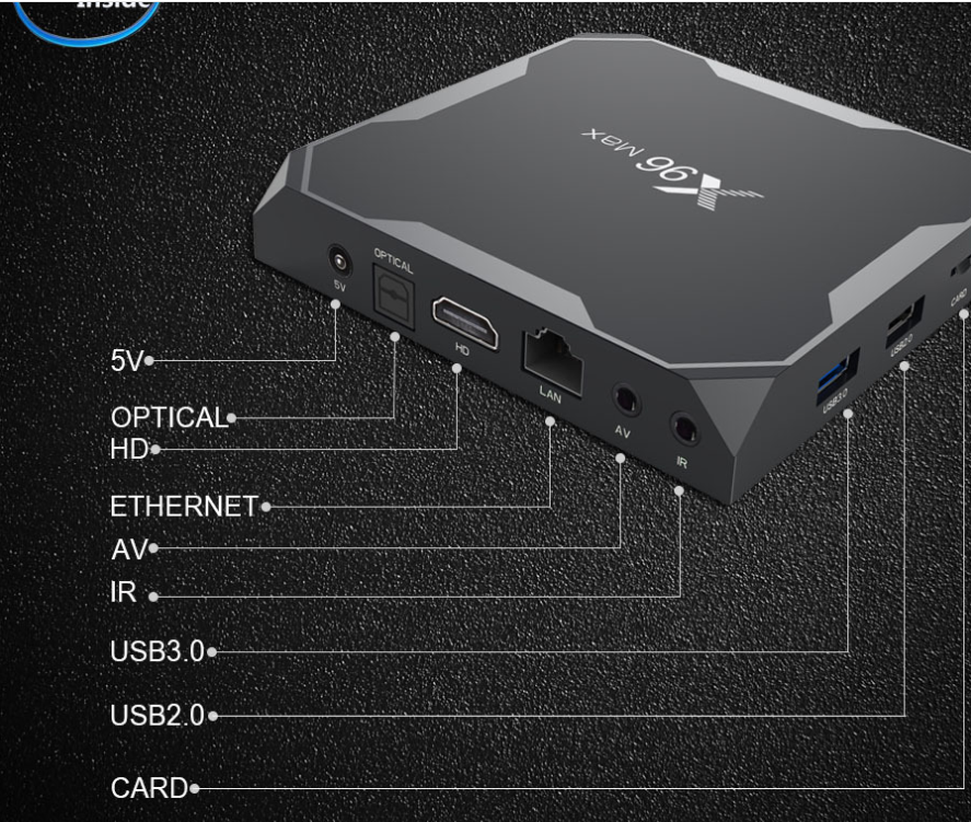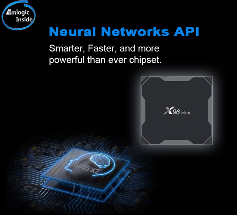 Android TV Box X96 MAX 4GB/32GB là sản phẩm mới nhất được sử dụng bộ xử lý CPU Amlogic S905X2 cho hiệu năng vượt trội hơn so với các dòng chip thế hệ cũ. Enybox X96 Max chạy hệ điều hành Android 8.1 tùy biến với giao diện khá đẹp tương thích với nhiều ứng dụng xem phim, xem truyền hình, trực tiếp bóng đá, nghe nhạc,… X96 MAX còn được trang bị chip Wi-Fi công nghệ MIMO với 2 băng tần 2.4GHZ và 5GHz cho tốc độ bắt sóng wifi cực mạnh với đường truyền ổn định.