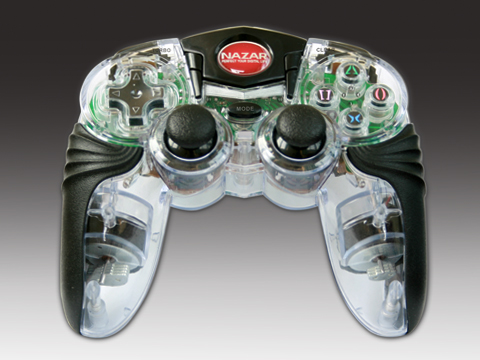 - Nazar V48: Đây là gamepad được giới game thủ PES hâm mộ nhất. Thiết kế D-pad vừa có độ bền, không bị gẫy phím như ở Logitech, dễ điều khiển hơn PS2. Bốn phím chính có thiết kế theo kiểu của Xbox 360, tạo cảm giác 3D khá bóng bẩy, sang trọng. Nhưng kích thước nhỏ hơn Xbox 360, do đó vừa cỡ tay người châu Á hơn.