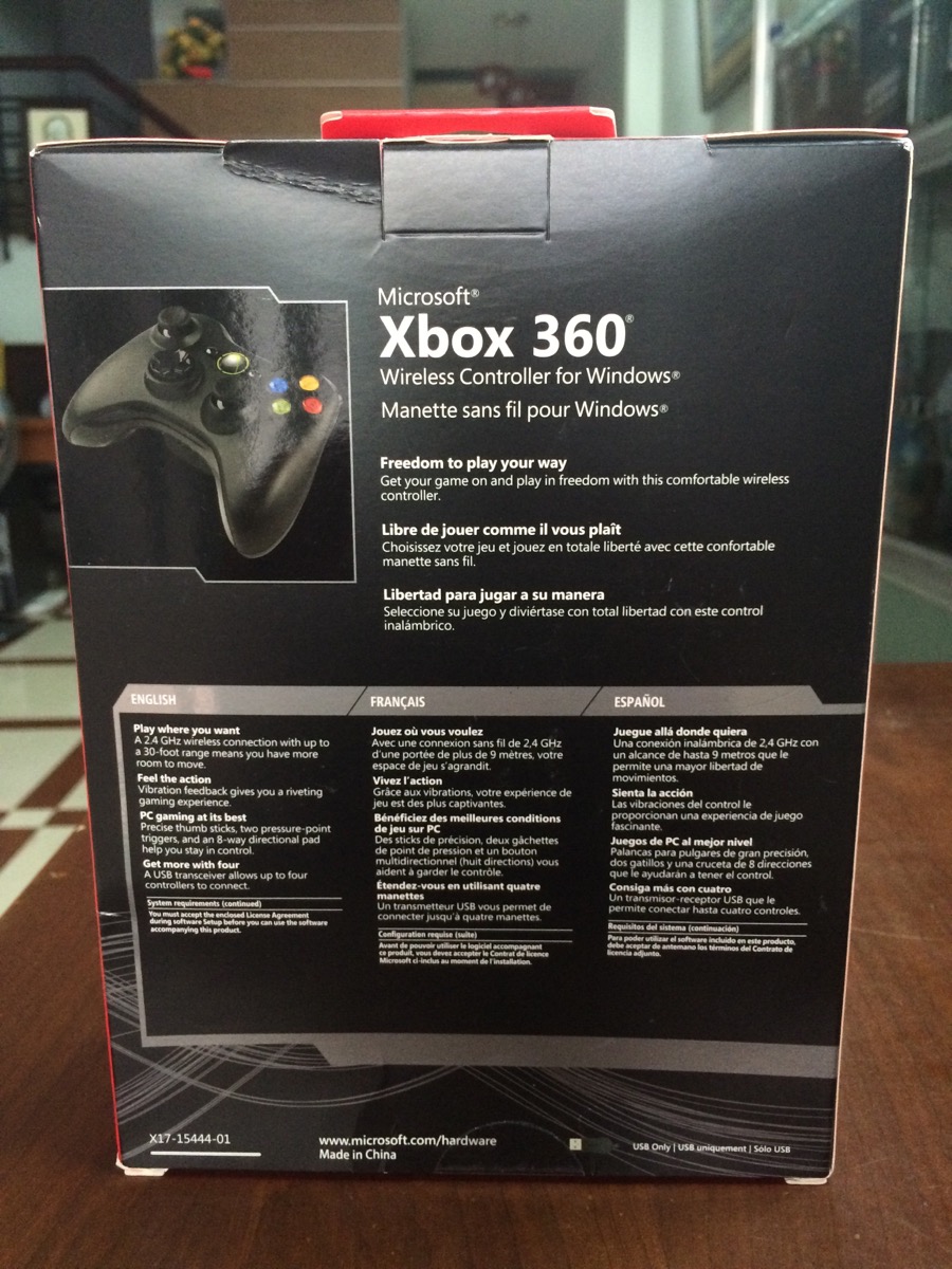 Hình ảnh thực tế của sản phẩm tại cửa hàng Thietbigiaitri.net Không giống như các loại tay cầm game Xbox fake, refurbish, hàng cũ có mặt trên thị trường với giá từ 700 - 800 ngàn, gamepad XBox 360 chính hãng do thietbigiaitri.net cung cấp là hàng new in box, đầy đủ phụ kiện đi kèm gồm tay cầm + đĩa + sách....