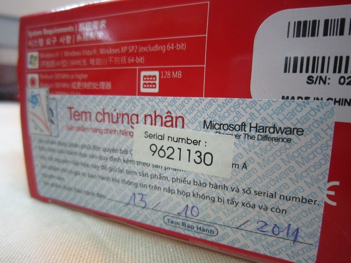 Tem bảo hành và chứng nhận nhập khẩu chính hãng Microsoft cùng với số serie trên bao bì trùng với số serie được in chìm trên gamepad.