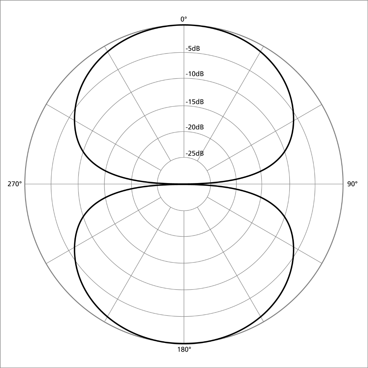 Bi-directional (hay Figure of 8): Là dạng bắt tín hiệu theo hai hướng trước và sau. Độ nhạy tín hiệu trước là 100%, đằng sau 100%, hai bên là 0 %. Khi sử dụng dạng này lưu ý màng của micro chuyển động theo hai hướng ngược nhau nên nếu ta thu thanh từ đằng sau thì có thể tín hiệu sẽ ngược pha “out of phase”.