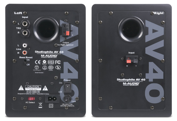 Loa kiểm âm monitor M-Audio Studiophile AV 40 thích hợp sử dụng cho phòng thu âm, nghe nhạc chất lượng cao audiophile. (Amplifier tích hợp trong loa với công suất 40W)