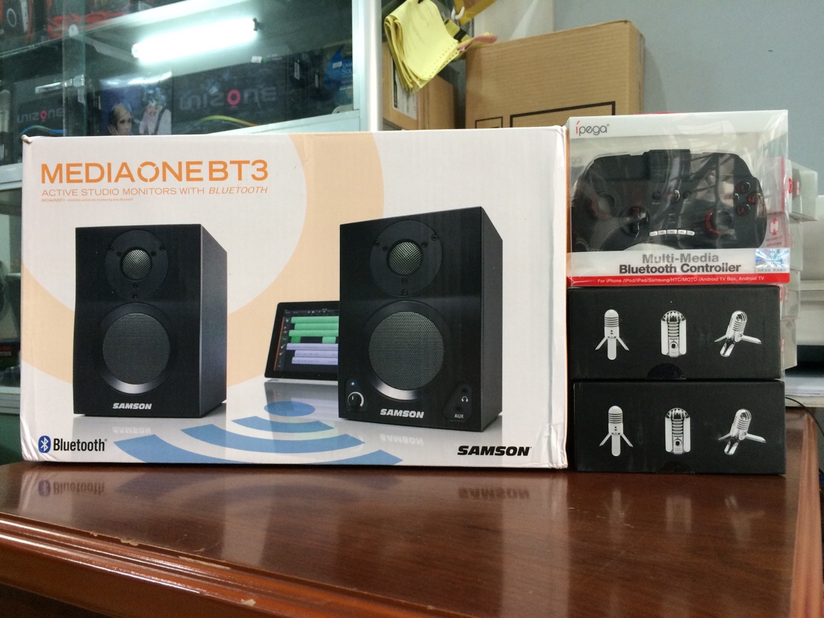 Loa kiểm âm monitor Samson MediaOne BT3 là sản phẩm mới của Samson trong năm 2015, sản phẩm hàng mới new full box, bảo hành 12 tháng. Hình ảnh thực tế của sản phẩm tại cửa hàng Thietbigiaitri.net Điểm nổi bật ở phiên bản mới này là Samson MediaOne BT3 được trang bị khả năng kết nối với điện thoại thông minh, máy tính xách tay...