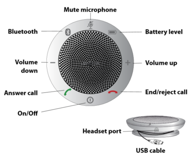 Chỉ cần cắm cáp USB của Jabra Speak 510 vào cổng USB có sẵn trên máy tính của bạn. Jabra Speak 510 sẽ tự động bật khi kết nối với máy tính.
