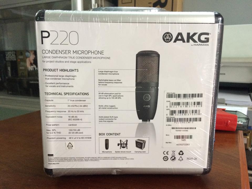 Micro thu âm AKG P220 (Seri 2014) là sản phẩm mới nhất của hãng AKG (Áo), được nâng cấp từ phiên bản cũ (màu xanh) với nhiều tính năng được cải tiến như độ ồn, độ nhạy, áp lực đầu vào tối đa...