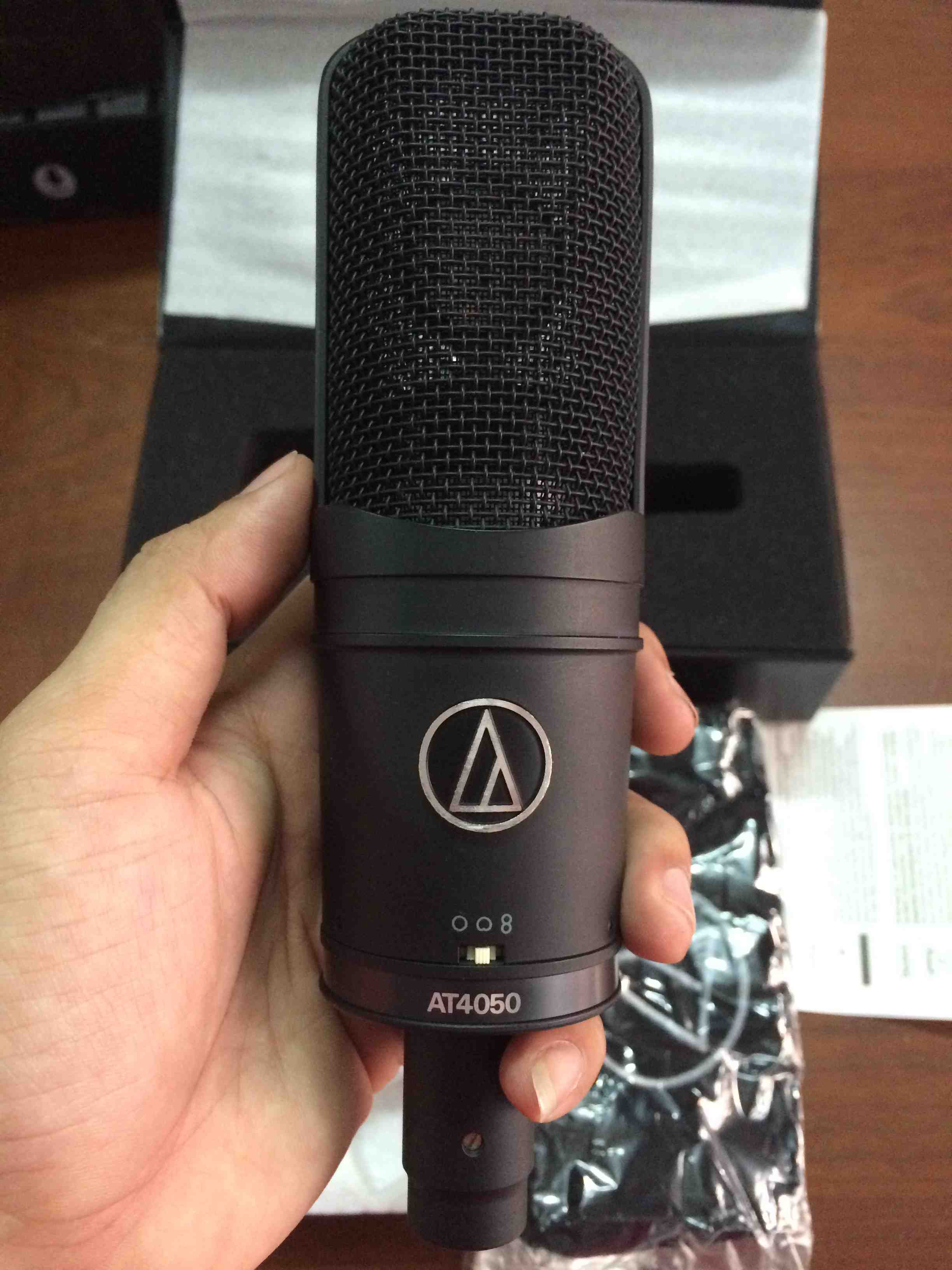 Hình ảnh thực tế của sản phẩm tại cửa hàng Thietbigiaitri.net Hàng mới fullbox bảo hành 12 tháng Micro thu âm Audio Technica AT4050 là micro dạng tube (ống bóng đèn chân không) chất lượng cao chuyên dùng cho phòng thu âm chuyên nghiệp. Phụ kiện bao gồm túi da, chống rung và hộp đựng. Hàng mới new full box, xuất xứ...