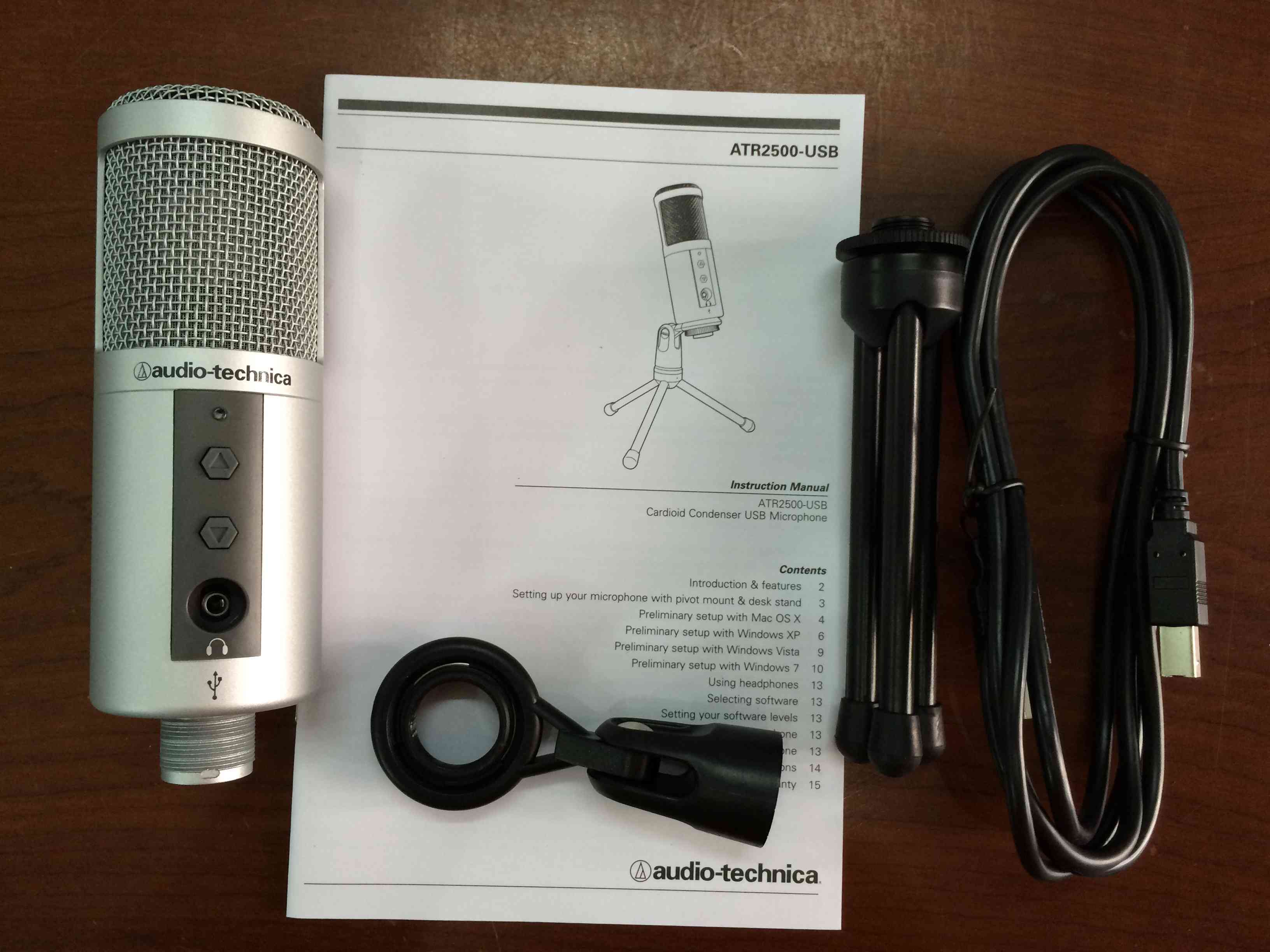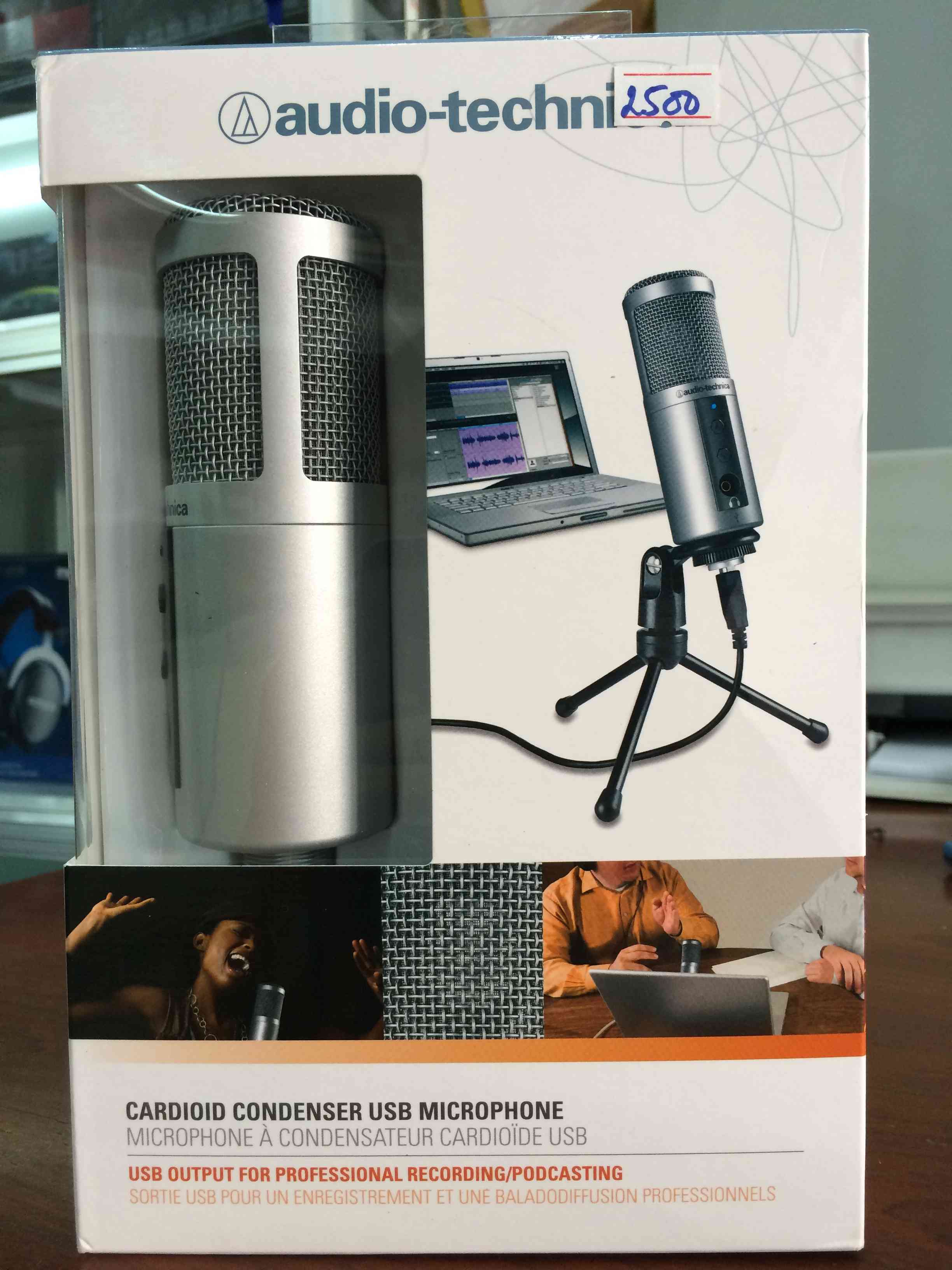 Micro thu âm ATR2500-USB trên máy tính, kết nối bằng USB thuận tiện. ATR2500-USB đáp ứng các nhu cầu thu hát giải trí tại nhà, thu lồng tiếng, thu phát thanh. Chất lượng thu âm tốt, định hướng cardioid giảm tạp âm đằng sau và hai bên. Sản phẩm hàng new full box, bảo hành 12 tháng. Trọn bộ sản phẩm bao gồm 01 micro, 01 dây nối USB, 1 shockmouth nhỏ. Sản phẩm hàng đã qua sử dụng còn mới, có giá 02 triệu, bảo hành 03 tháng.