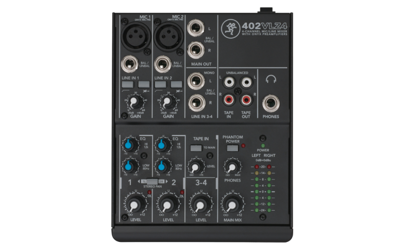 Mixer thu âm Mackie 402 - VLZ4 (4 kênh đầu vào) có 2 ngõ vào micro và 1 cặp line stereo. Mixer thu âm Mackie 402 VLZ4 là sự lựa chọn phù hợp cho người viết nhạc và thu từng track. Bảo hành 12 tháng.