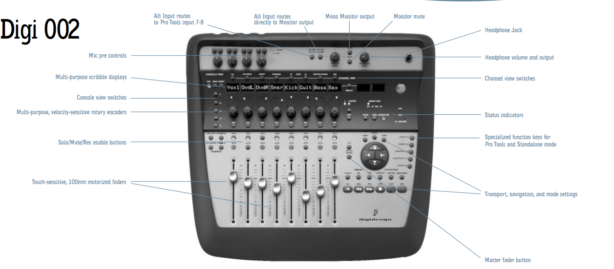 Mixer Digidesign 002 Console là sản phẩm chuyên dùng cho phòng thu âm chuyên nghiệp. Hàng có sẵn hoặc order nhập trực tiếp từ Mỹ, sản phẩm đã qua sử dụng, bảo hành 01 tháng. Liên hệ 090.333.7586 để được báo giá trực tiếp. Mixer Digidesign 002 Console kết nối với PC, MAC qua cổng FireWire và chuyên dùng với phần mềm thu âm Pro Tools LE ™.
