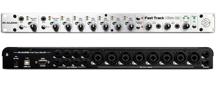 Sound card thu âm Maudio Fast Track Ultra 8R được thiết kế cho công việc thu âm chuyên nghiệp, Fast Track Ultra 8R hỗ trợ cổng MIDI cùng 08 đường Input và Output riêng biệt, kết nối tốc độ cao qua cổng USB 2.0.
