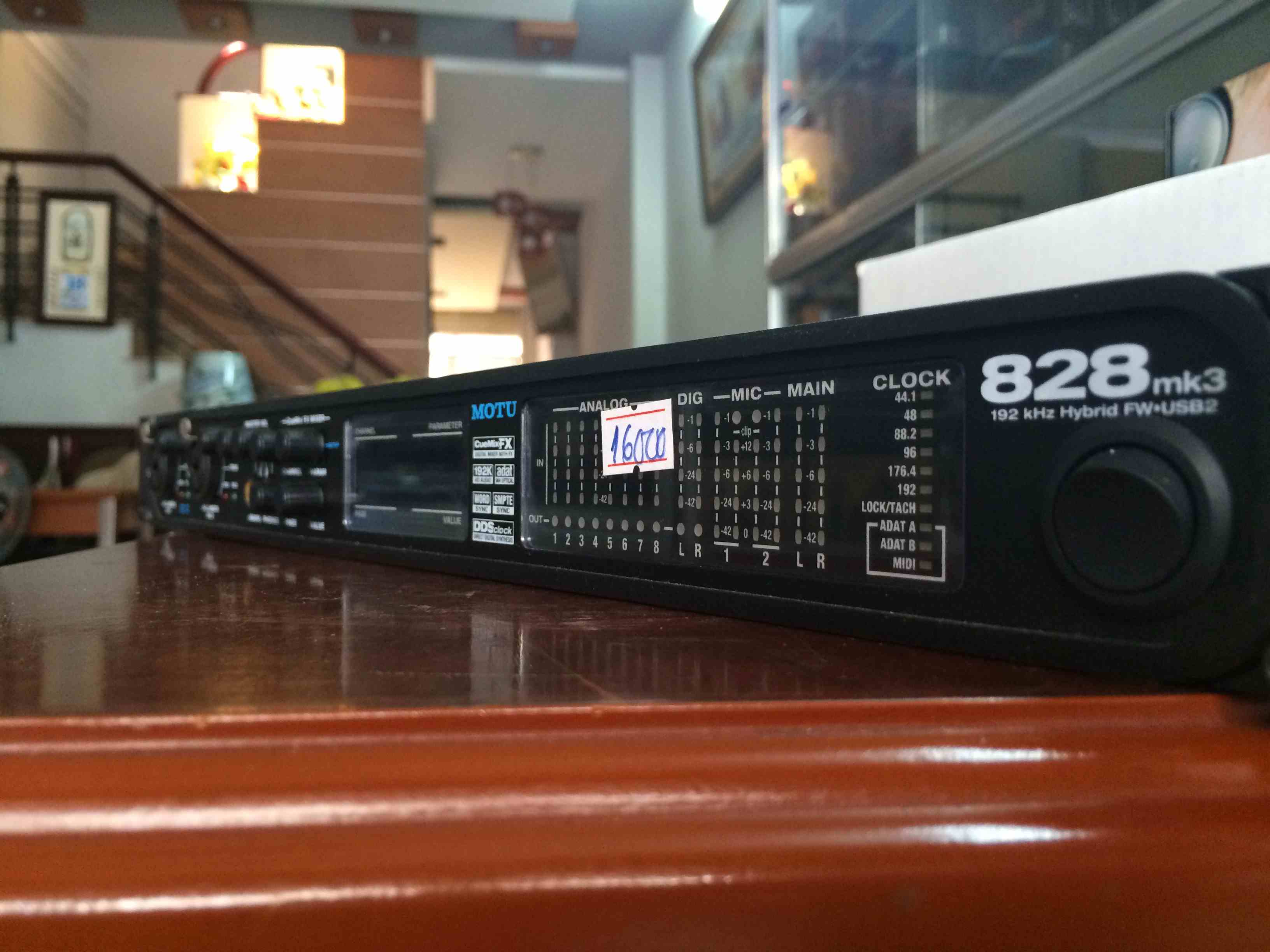 Hình ảnh thực tế của sản phẩm tại cửa hàng Thietbigiaitri.net MOTU 828 Mk3 là card sound thu âm âm thanh chuyên nghiệp được sử dụng rộng rãi nhất hiện nay chuyên dụng cho phòng thu âm chuyên nghiệp. Sản phẩm hàng đã qua sử dụng, còn rất mới like new, bảo hành 03 tháng. Trang bị đồng thời 2 kết nối FireWire 800...