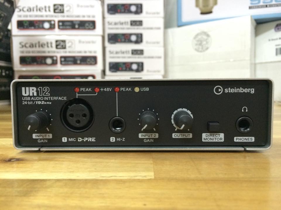 Hình ảnh thực tế của sản phẩm tại cửa hàng Thietbigiaitri.net Soundcard Steinberg UR12 nổi bật khi được trang bị preamps One Class A D-PRE nổi tiếng của hãng Yamaha, độ phân giải âm thanh cao cấp 24-bit/192 kHz. Được trang bị 1 Micro pream và 1 in Guitar, bass trong một kích thước bé nhỏ đem lại sự tiện lợi và dễ di...