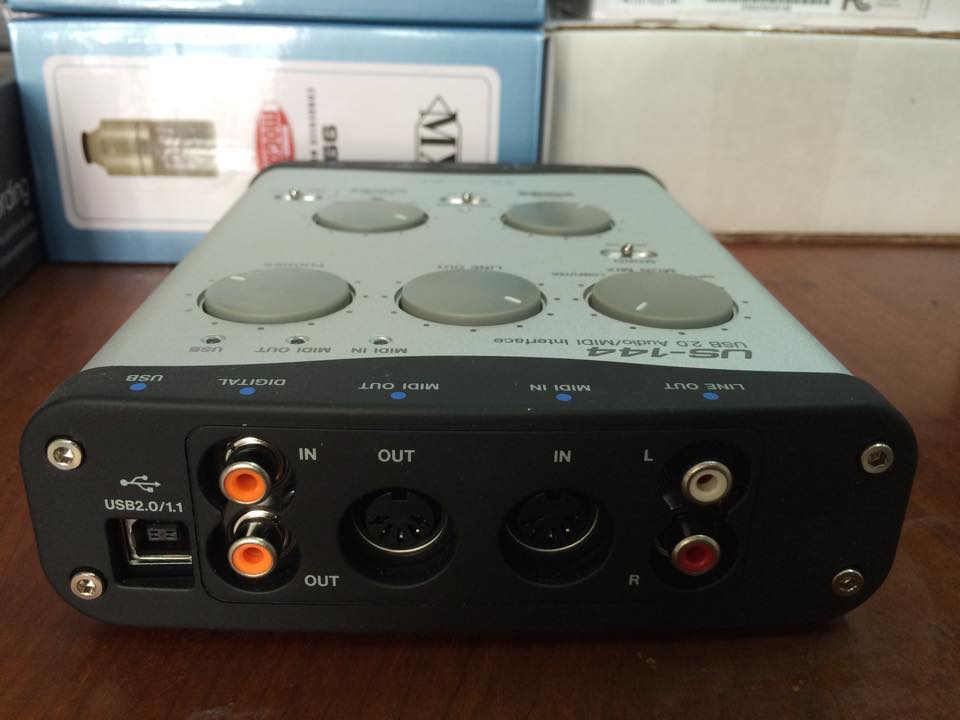 Hình ảnh thực tế của sản phẩm tại cửa hàng Thietbigiaitri.net Sound card USB Tascam US-144 là sản phẩm giá rẻ chất lượng Nhật Bản chuyên dùng cho Home Studio với chuẩn âm thanh 24-bit/96kHz. Sản phẩm hàng đã qua sử dụng, bảo hành 03 tháng. Sound card USB Tascam US-144 hỗ trợ 02 cổng vào micro riêng biệt kèm tính năng hạn chế trễ...