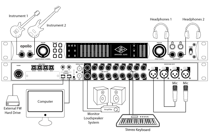 - Kết nối MAC bằng cổng thế hệ mới Thunderbolt có tốc độ truy suất cao nhất và ổn định. Kết nối PC với cổng Firewire 800 cho phép Apollow Quad có thể hoạt đột tốt tại phân giải 24bit/192kHz và bộ xử lý UAD-2 chạy với thời gian thực.