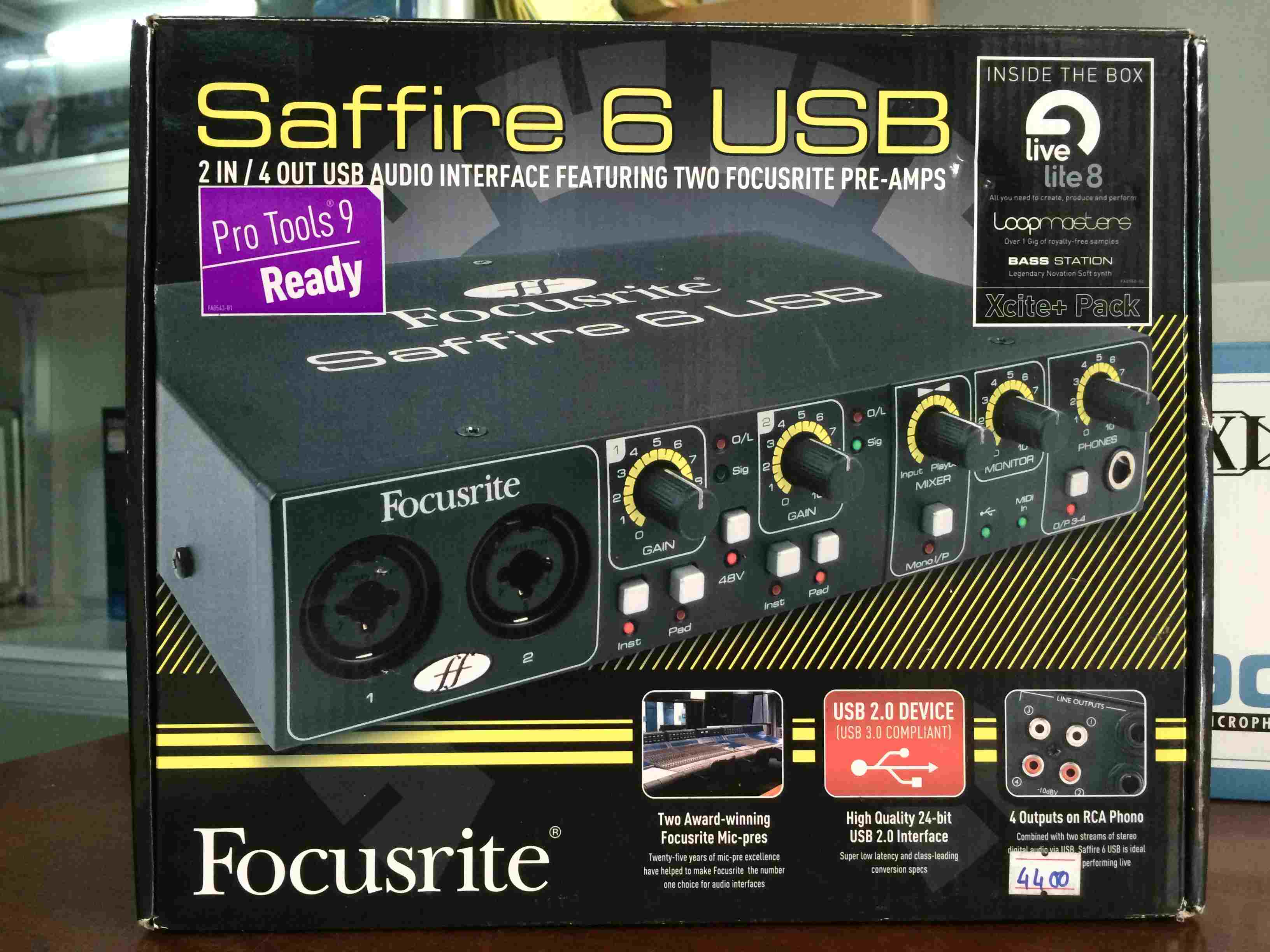Hình ảnh thực tế của sản phẩm tại cửa hàng Thietbigiaitri.net Sound thu âm USB Focusrite Saffire 6 có 2 đường vào/4 đường ra chuẩn kết nối USB với 2 preamp chất lượng cao đã được công nhận. Sound thu âm USB Focusrite Saffire 6 là sản phẩm mới và có được sự khẳng định chất lượng do hãng sản xuất Preamp và...