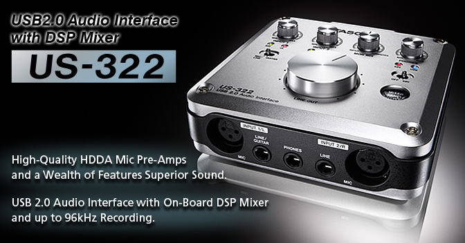 Ra mắt vào năm 2013, Sound card thu âm Audio interface US 322 được xem là dòng sản phẩm cải tiến của TASCAM. US 322 cho chất lượng âm thanh thu đạt mức lên đến 24bit/ 96kHz với chất lượng soundboard cải tiến. Kết nối máy tính bằng qua cổng USB 2.0. Thu âm multitracks 2 đường.