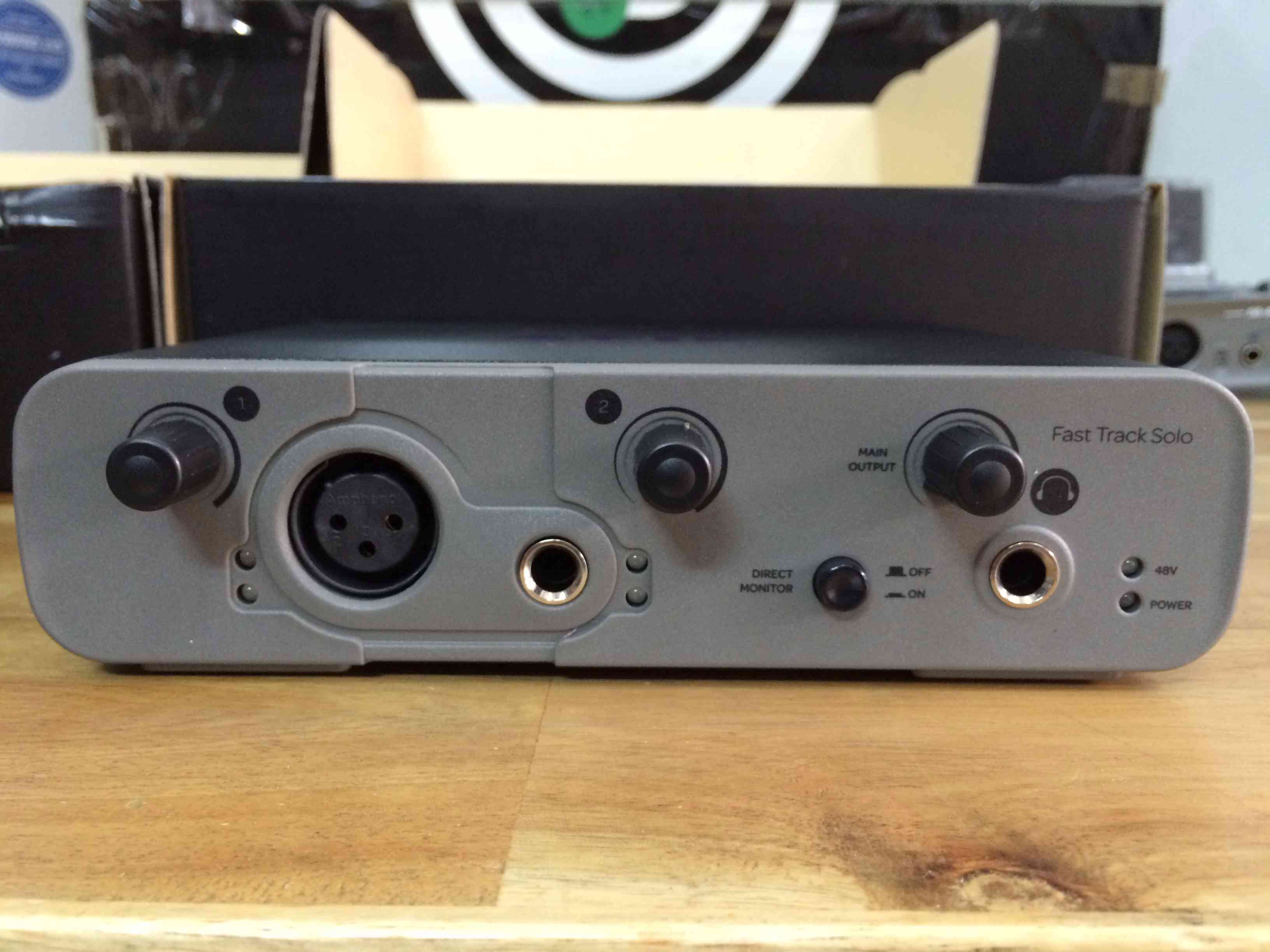 Sound thu âm Avid Fast Track Solo hỗ trợ 01 cổng micro, 01 cổng cho nhạc cụ đàn ghita riêng biệt, tích hợp cung cấp nguồn phantom 48V dành cho micro condenser.