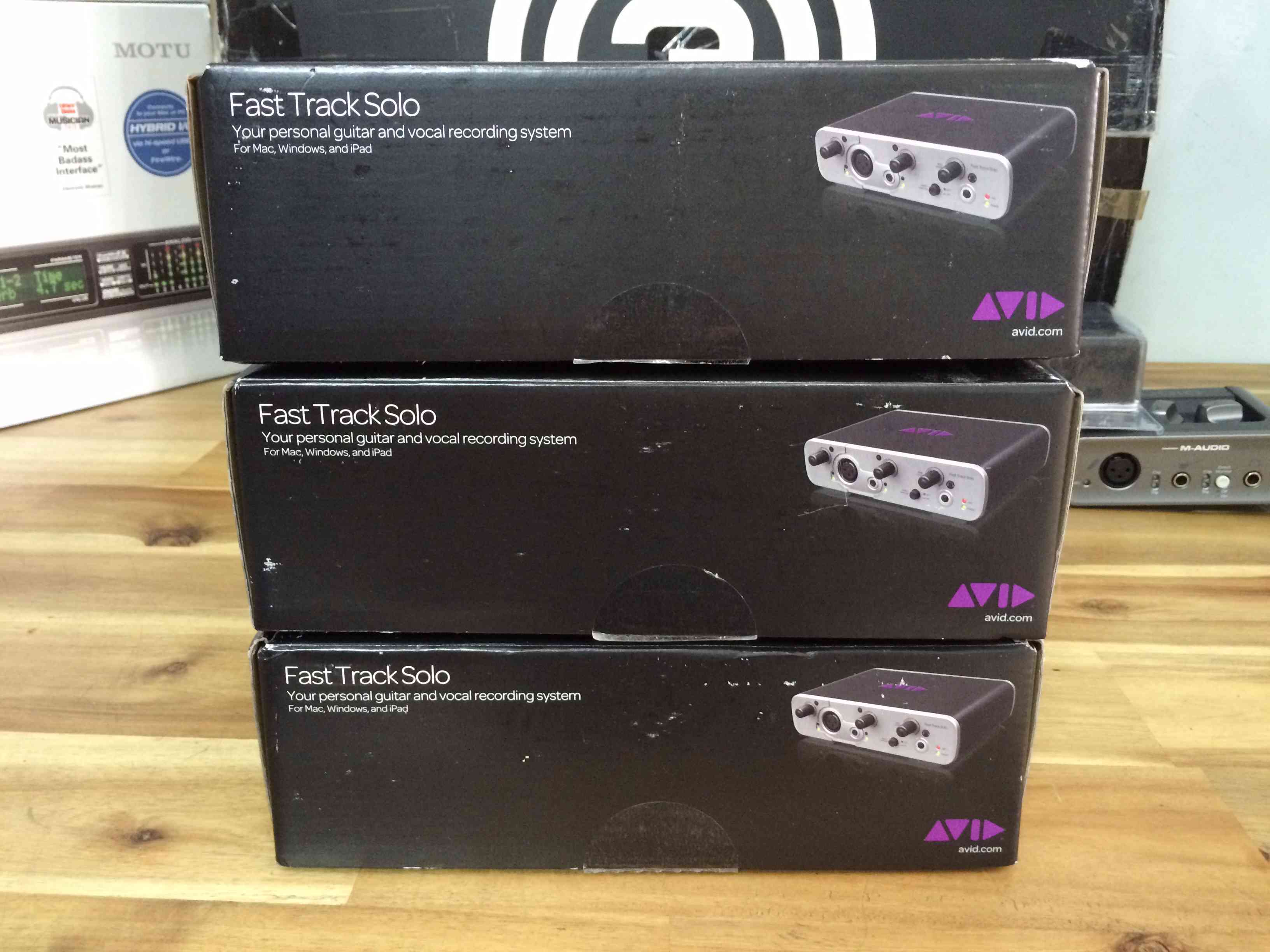 Sound thu âm Avid Fast Track Solo có thể sử dụng cho máy Mac, PC, hoặc iPad, rất dễ sử dụng và hỗ trợ lọc sạch âm thanh đầu ra chất lượng (chuẩn âm thanh 24-bit/48 kHz). Sản phẩm tích hợp preamp chất lượng cao của hãng Avid danh tiếng. Tương thích phù hợp nhất với phần mềm thu âm ProTool.